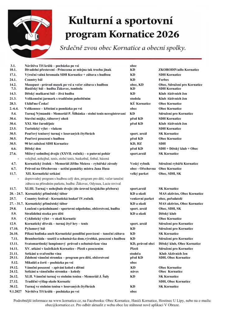Kulturní program Kornatice 2026 najdete níže.